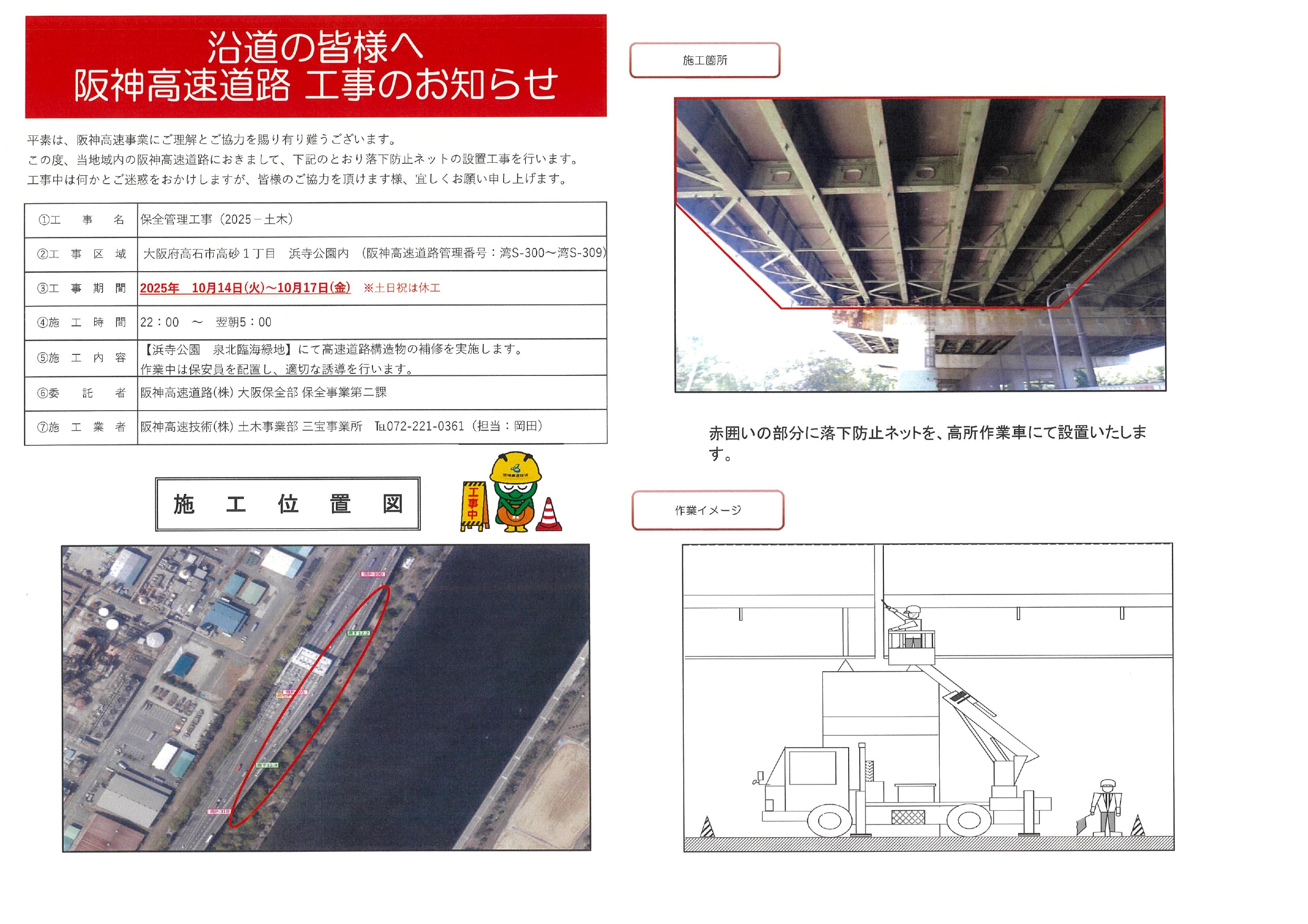 阪神高速道路 落下防止ネット設置工事のお知らせ