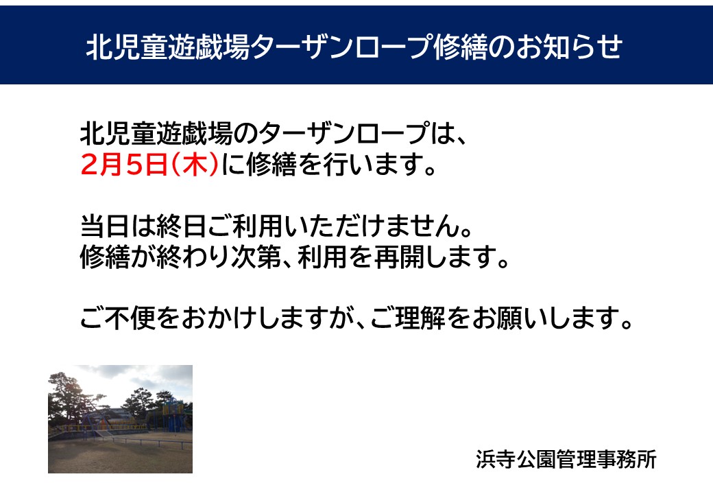【北児童遊戯場】ターザンロープ修繕のお知らせ