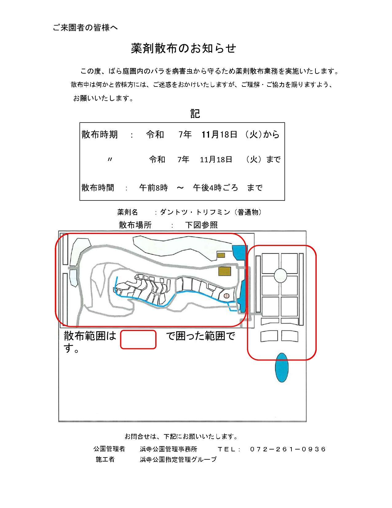 ばら庭園薬剤散布について